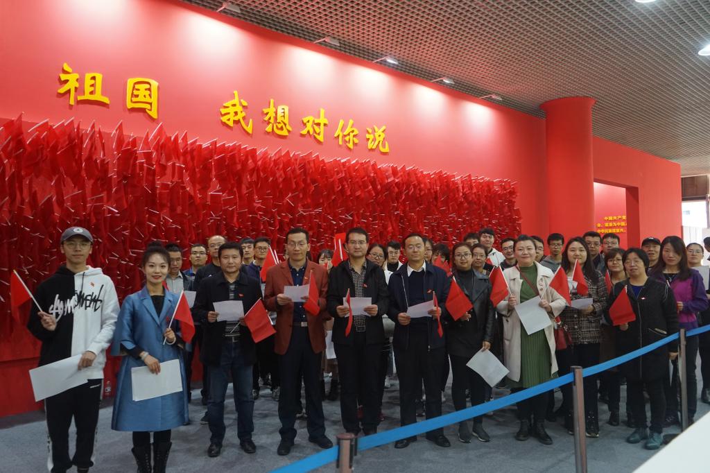 参观过程中,公司师生统一佩戴党员徽章,认真倾听讲解员讲解,时不时为改革发展的巨大成就而驻足观看,感动不已,并用手机拍摄下一幅幅珍贵的图片和展品。讲解结束后,师生纷纷重新返回观看记忆深刻的片段和内容,最后,大家汇聚在“祖国,我向对你说”展区,挥舞小红旗,共同诵读习近平关于“不忘初心、牢记使命”论述摘编。抒发大家对祖国的深沉感情和诚挚祝福。