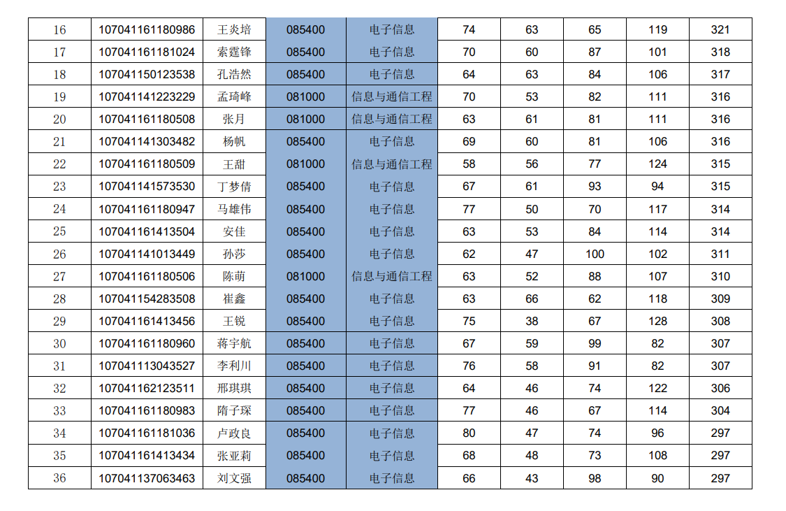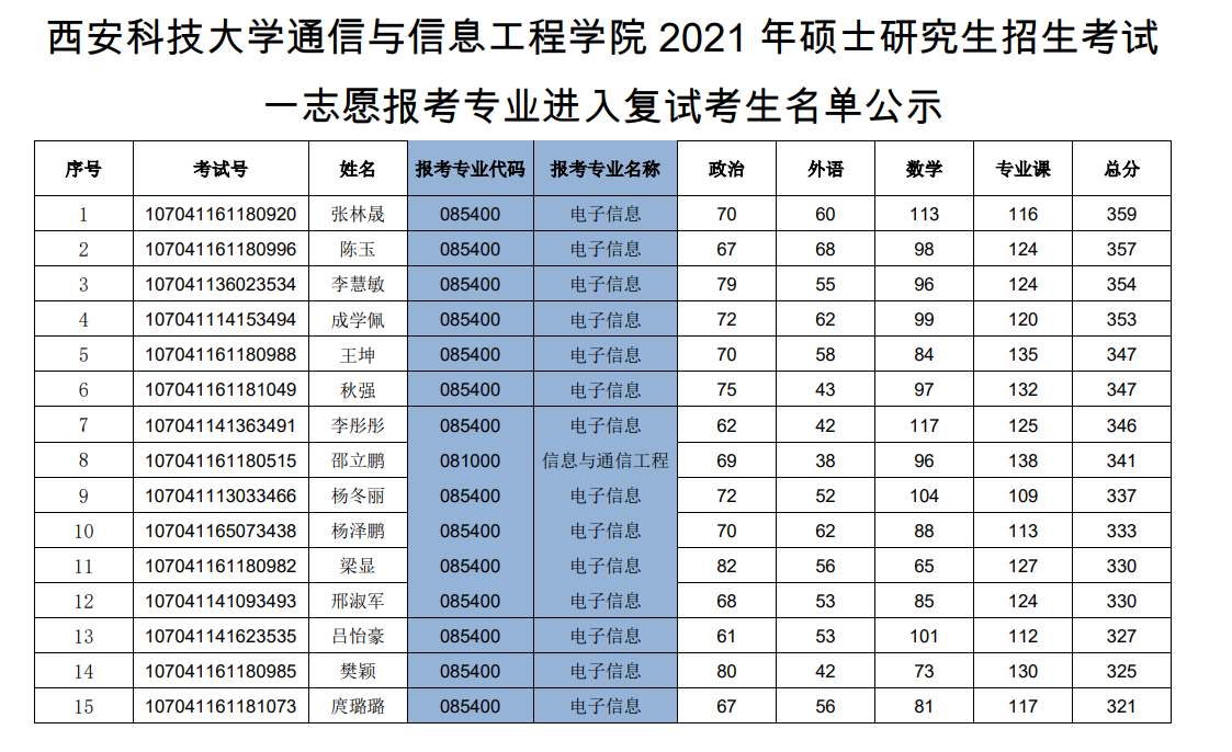 2021年硕士研究生招生考试一志愿复试考生名单公示