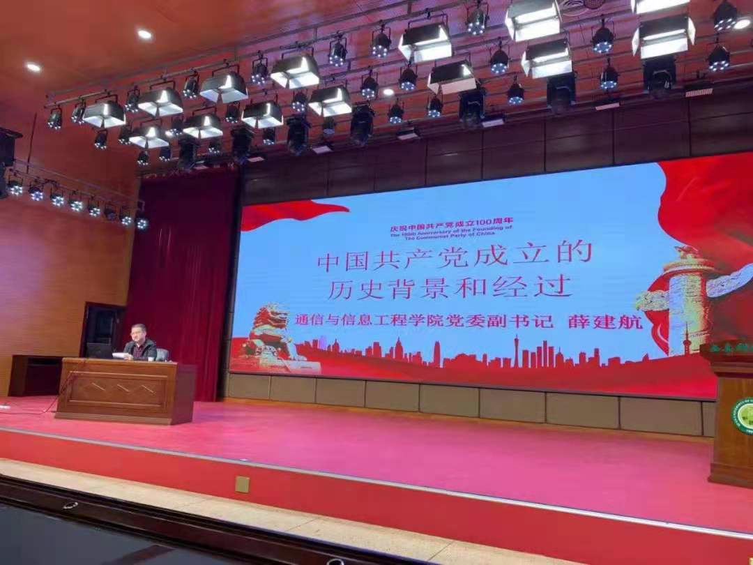 为将党史学习教育进一步推向深入,4月23日上午,公司党委副书记薛建航在骊山校区煤炭科技中心报告厅为2018级全体本科生讲授了题为《中国共产党成立的历史背景和经过》的专题党课。2018级辅导员、2018级全体员工500余人聆听了党课。