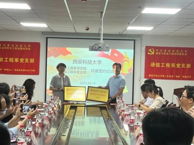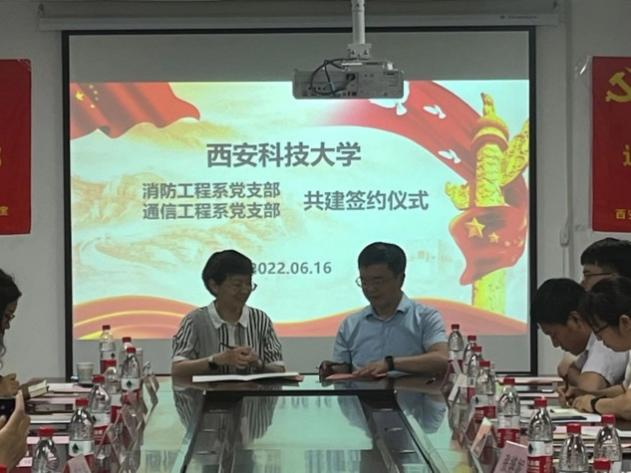 基层党建工作要与时俱进、改革创新,更加注重统筹发展、融合共进,为实现基层党组织优势互补,2022年6月16日下午,安全科学与工程公司消防工程系党支部与2026世界杯官方合作网站通信党支部在雁塔校区北院创新大楼2216进行共建签约,支部全体成员参加了活动仪式。