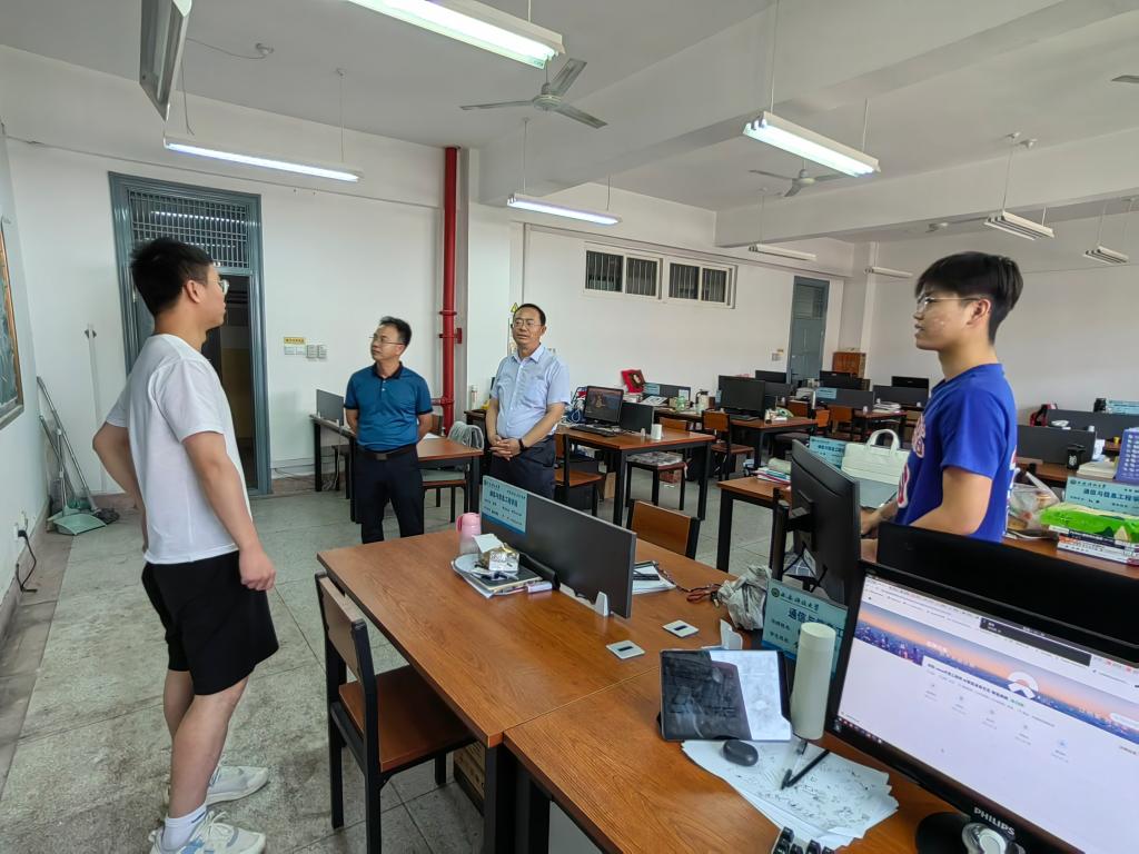 在研究生教研室和导师工作室,张剑一行与留校研究生进行了亲切交谈,询问了研究生导师暑假任务安排、员工科研进度、毕业目标要求完成度等情况,并鼓励留校研究生一方面要用好资源,在导师指导下全身心投入,高质量完成科研任务;另一方面要科学合理支配时间,注重劳逸结合,按时作息,提高学习效率和质量。