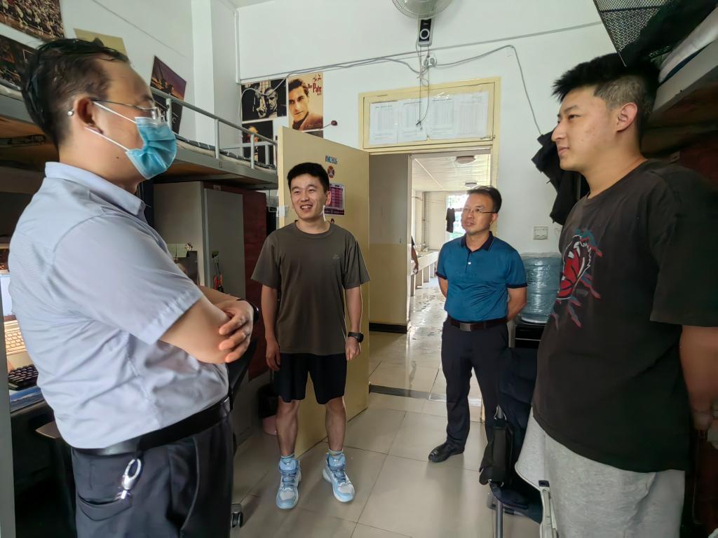 在员工公寓,张剑一行详细询问了本科生留校原因、近期学习计划和校园生活情况,听取并回应了员工在留校期间的实际需求与意见建议。同时,结合电子信息行业优势和学科专业发展趋势,建议就业员工调整心态,早做准备,积极把握秋季学期的招聘机会;建议考研员工理性报考,踏实复习,提高考研成功率。