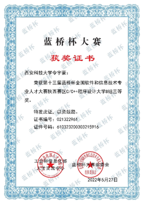 十三届蓝桥杯陕西赛区三等奖