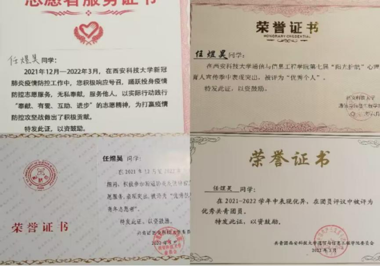 翻过一座山,你就高过一座山。从刚开始接触班级工作时的手忙脚乱,到现在的有条不紊,这一路上我经历了很多。我的工作顺利进行、能力得到提升,得益于辅导员刘悦老师的悉心指导、家人的关心鼓励、同学们的支持陪伴。在此期间,我很荣幸获得了“优秀员工干部”、“优秀共青团员”、“优秀抗疫志愿青年”等荣誉称号。并且在其他班委和全体同学的配合下,电子信息工程2103班被评为“五星团支部”、“优秀团支部”,多间宿舍被评为“优秀员工宿舍”,班级同学获得“羽毛球、乒乓球团体第一名”的好成绩。