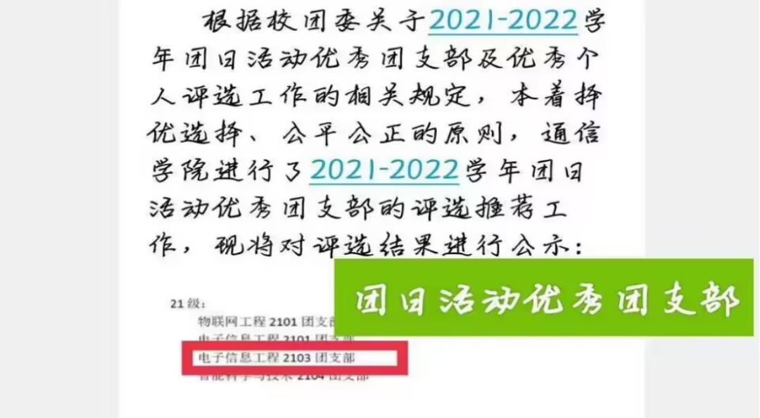 从那之后,每次开展团日活动前,我都会按照同学们最近反馈的热点问题开展主题鲜明的团日活动。如“消防与宿舍安全”、“老员工心理健康”、“防诈骗,莫大意”等等。紧扣班级实际情况和同学们的心理状态。再进行策划与任务分工,大家有措施有目的地干好自己的任务。最终在2021-2022年度优秀团支部评选中获得“团日活动优秀”的荣誉称号。