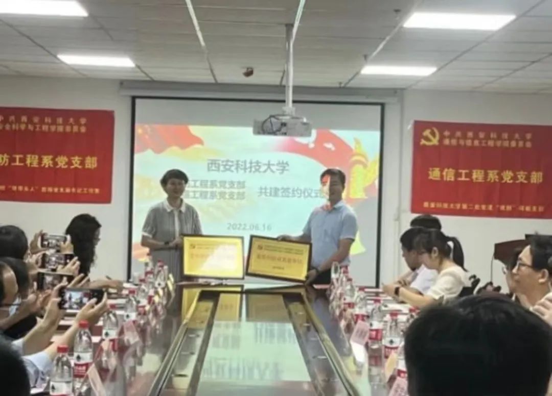 消防工程系党支部书记马砺和通信工程系党支部书记毛昕蓉签订党建共建协议,互授共建牌匾。马砺和毛昕蓉分别结合各自支部发展实际,从理论学习、师德师风、教学科研、社会服务、文化传承等方面进行了介绍交流。消防工程系党支部于志金、通信工程系党支部徐艳红两位党员分别结合自身学习工作进行专题交流分享。通信工程系李白萍教授对青年教师的教学科研能力提出了期望,希望双方以共建为新的起点,进一步加强党建交流与合作,夯实支部的战斗堡垒作用、发挥党员的先锋模范作用,同频共振、互联互通、共建共享。马砺表示,消防工程系党支部与通信工程系党支部将深化“资源共享、优势互补、互相促进、共同提高”的党建结对工作机制,进一步发挥支部特色和优势,加强教学、科研等方面的深度融合,促进基层党组织建设高质量发展,为公司的发展贡献力量。