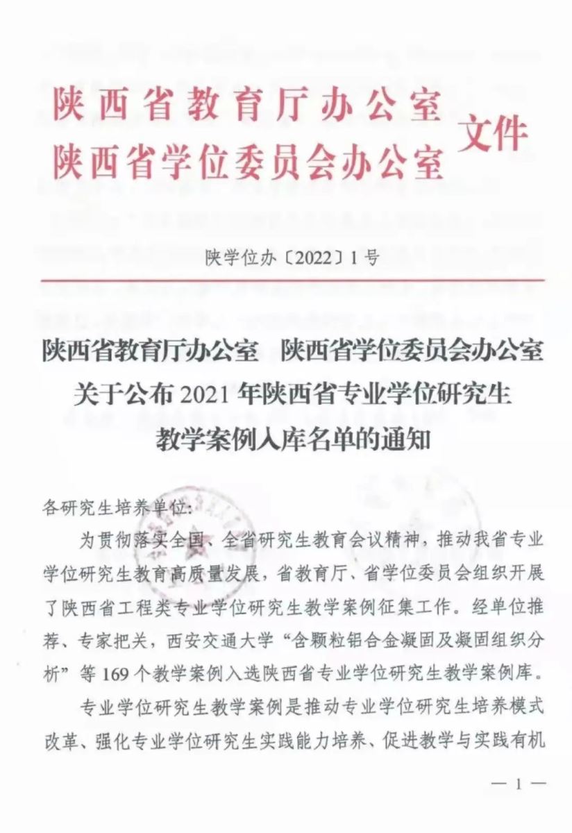 《关于公布2021年陕西省专业学位研究生教学案例入库名单的通知》