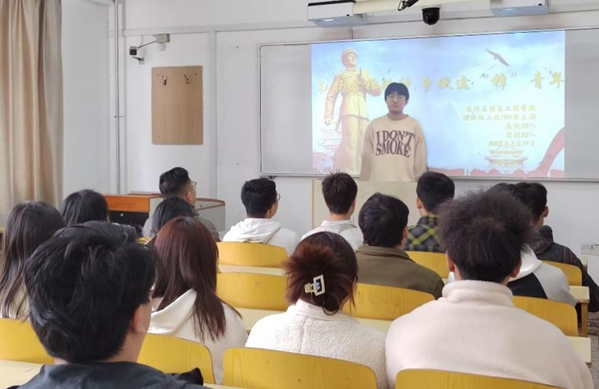 随后,团支部副书记彭志奎带领全班同学学习了习近平总书记关于雷锋精神的重要讲话,深刻领会雷锋精神的时代内涵及弘扬雷锋精神的重要意义,激励同学们向雷锋同志学习。