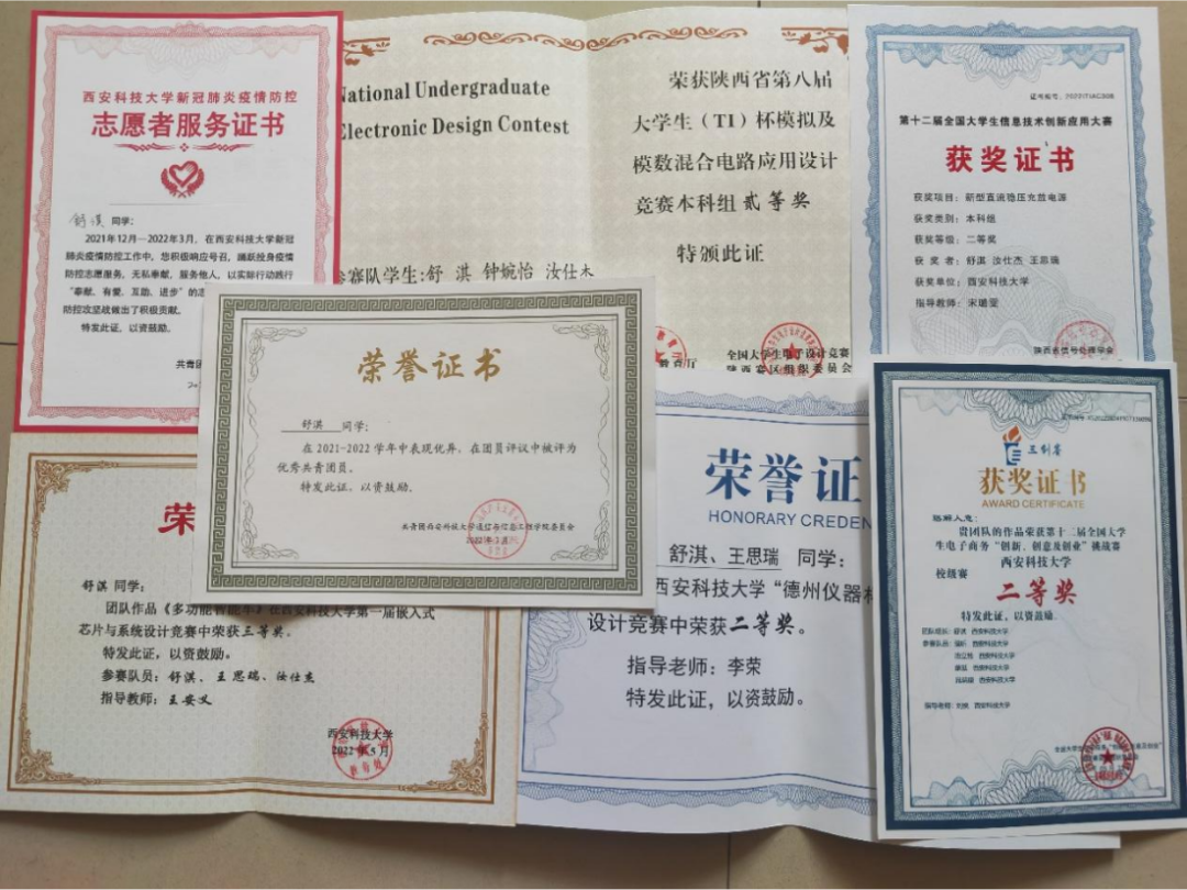 记得初入创新班时,我还是一个懵懂无知的员工,电路板怎么连接,程序怎么设置,我对此一无所知。在创新班里我慢慢积累知识、沉淀力量。在大一上学期的冬天,公司三创挑战赛通知出来时,我怀着忐忑的心理组建队伍参加了这次比赛,这个比赛也是我大学第一次参加的比赛,从选题到框架再到排版都是经过查阅资料与询问并且逐步完成的。在参加这个比赛之前我对自己也产生过质疑,我没有比赛经验,没有队友,也没有指导老师,我该如何迈出第一步?在我迷茫困惑的时候,我找到了辅导员刘悦老师,她鼓励我“万事开头难,只要迈出第一步就成功了一半。”没有比赛经验,就边摸索边积累;没有指导老师,她愿意做我的指导老师,给予我比赛的思路和指导;没有队友,就主动出击,在员工群聊中发布找队友的消息,很快就有四名志同道合的队友与我取得联系。我发现,当我努力迈出第一步,后来的路就越走越顺畅,我们这支临时组成的队伍也很快踏上了征途。由于大家都是第一次参加比赛,尽管在准备期间我们多次聚在一起商讨、细心做好每一步,还是出现了大家投入时间与精力不同步的情况,在临近交稿之际我们作品还是残缺的,当时的我内心就像热锅上的蚂蚁。但只是一味的着急并不能解决实际问题,在整理好自己的心情后,我静下心来梳理了目前作品中的问题,耐心与队友沟通并分工协作。在作品提交的前几天,大家每天除了上课吃饭,几乎都在打磨作品,终于在截止日期前完成了作品。在队友的鼓励与陪伴下,我们一起完成了答辩,并取得校级二等奖的成绩。这是我第一次摸索尝试参加竞赛,体会到了备赛过程的艰辛和收获成绩的喜悦。而这只是我竞赛之路的开始。