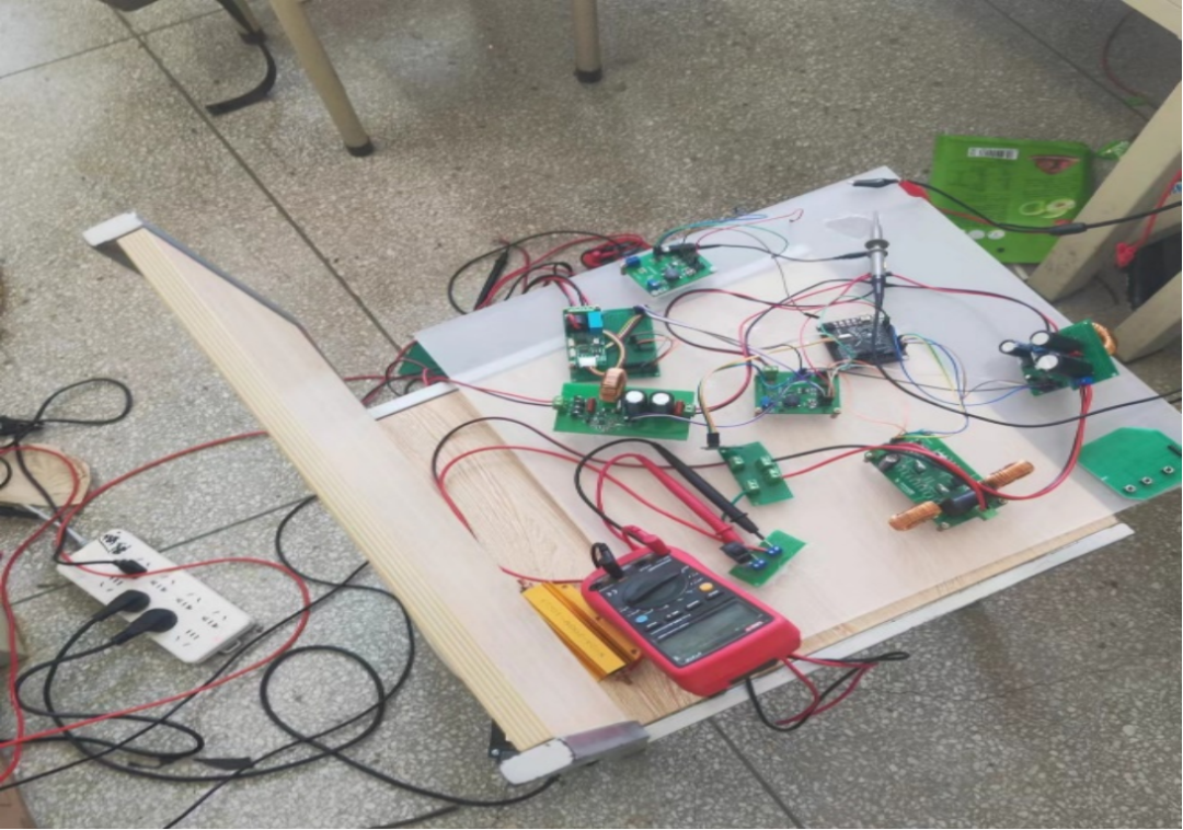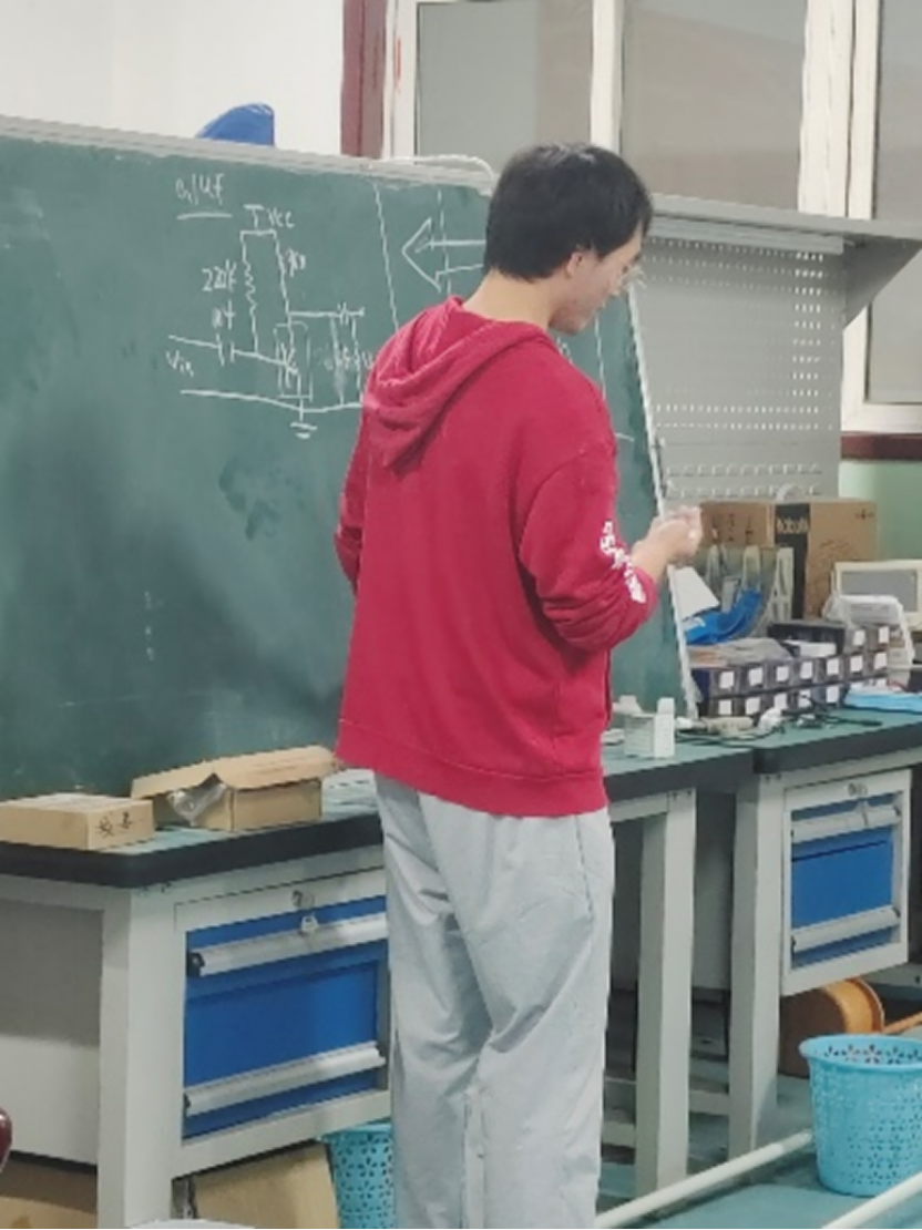 在模块回来后,我发现了一个致命问题,那就时这个模块只能运用到高频电路中,也就是数字电源中无法使用,经过思考后我决定加上开关与放大器将信号放大,在进行移位。说干就干,我通过在模电中学习的运放电路对信号进行了放大,但是模块依然无法正常使用,就这样浪费了一天。第二天晚上问题还是没有解决,我与队友拖着疲惫的身躯在校园散心,漫无目的的走到操场上,大家坐在看台上继续复盘讨论,一阵深夜的冷风吹来让我清醒不少,仿佛帮我拨开迷雾,突然我想到通过模电所学习的RC移向电路进行移向,也许可以满足题目要求。通过计算与测试后,虽然没有完全解决移向电路的问题,但已经可以封箱提交作品。8月9日,我们等来了评审结果——省级二等奖!这是我们进入大学来,获得的第一个省部级奖项,我们深知这成功来之不易,也庆幸自己的努力没有白费。
