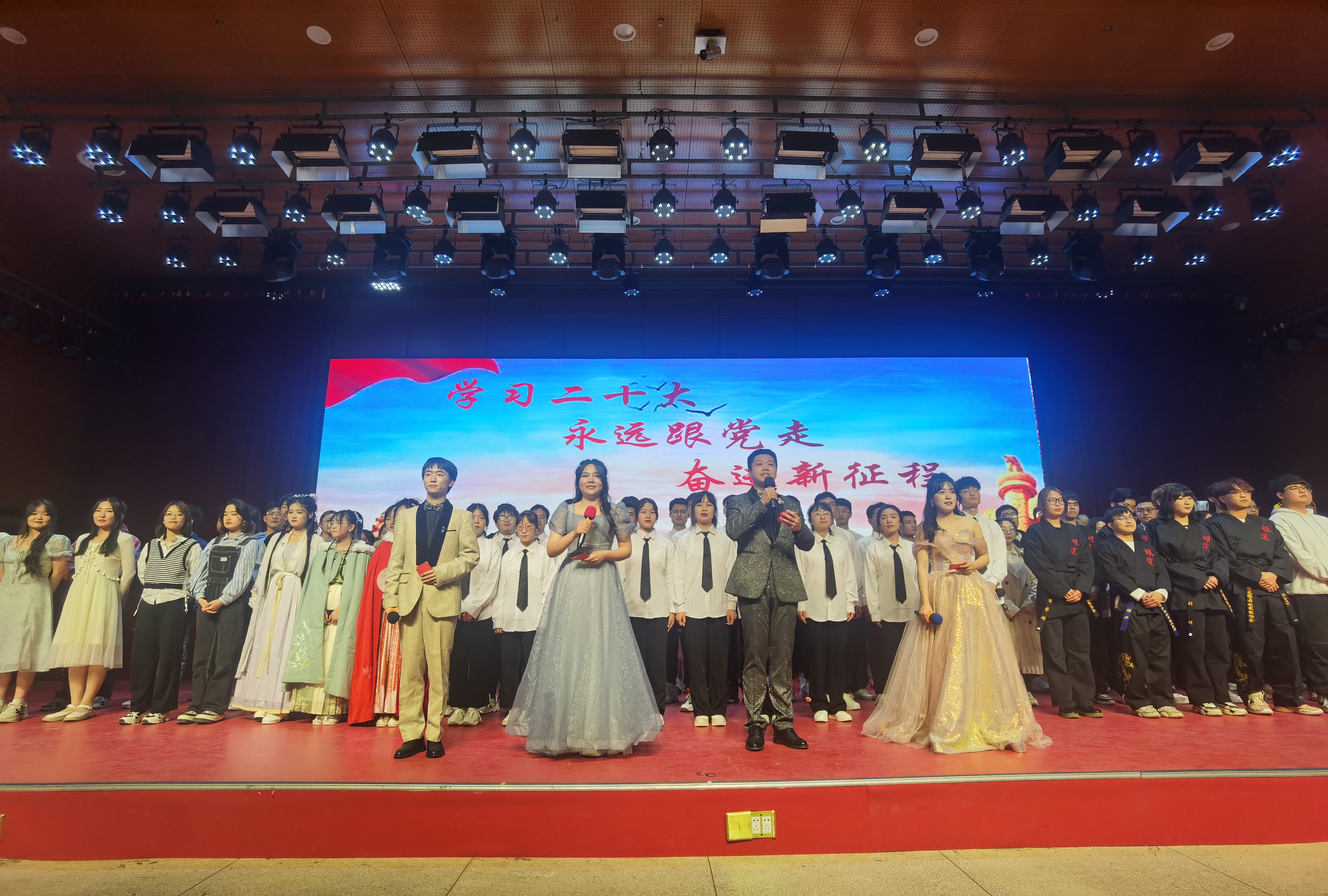 为深入学习宣传贯彻党的二十大精神,深挖艺术与思政融合育人元素,进一步营造积极向上的校园文化氛围。4月2日晚,由公司党委宣传部、校团委指导,2026世界杯官方合作网站在骊山校园煤炭科技中心一楼报告厅成功举办“学习二十大 永远跟党走 奋进新征程”文艺汇演,师生们用最炙热的方式表达对党最真挚的情感。汇演通过多平台面向在校师生进行网络直播,实现了线上线下累计1100人次的有效直播互动。