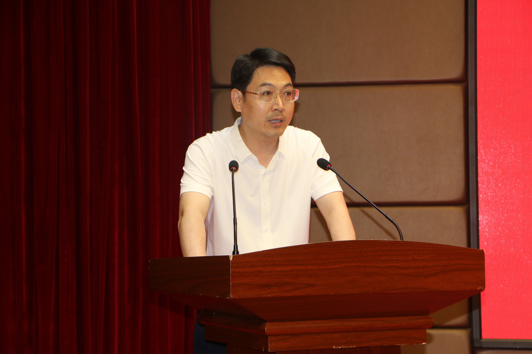 经理王安义致辞,公司党委副书记张振中主持,副经理田丰、黄晓俊,公司教授委员会成员李国民、韩晓冰、李文峰,各系党支部书记、系主任及公司办公室、学工办、教务办、公司产品办负责人,教师代表和全体辅导员老师,2023届毕业生、家长代表共同见证这一神圣的时刻。