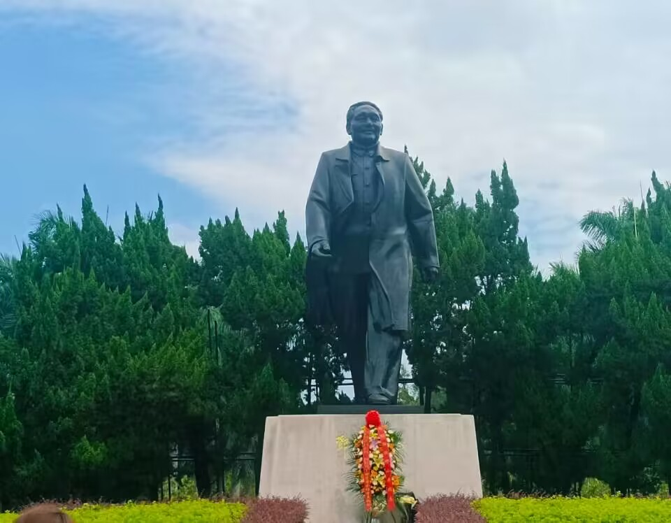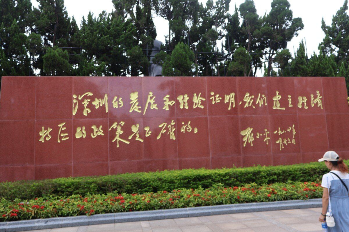 在深圳市莲花山公园山顶广场中央,矗立着改革开放总设计师邓小平同志的铜像,自深圳经济特区成立以来,这尊铜像俯瞰着深圳全貌,见证鹏城巨变。作为我国改革开放的一面旗帜,深圳凭借“只争朝夕、排除万难”的实干精神,从一个边陲小镇迅速发展成一座欣欣向荣的国际化大都市。社会实践团队在这里缅怀邓小平同志,见证中国特色社会主义的蓬勃发展。