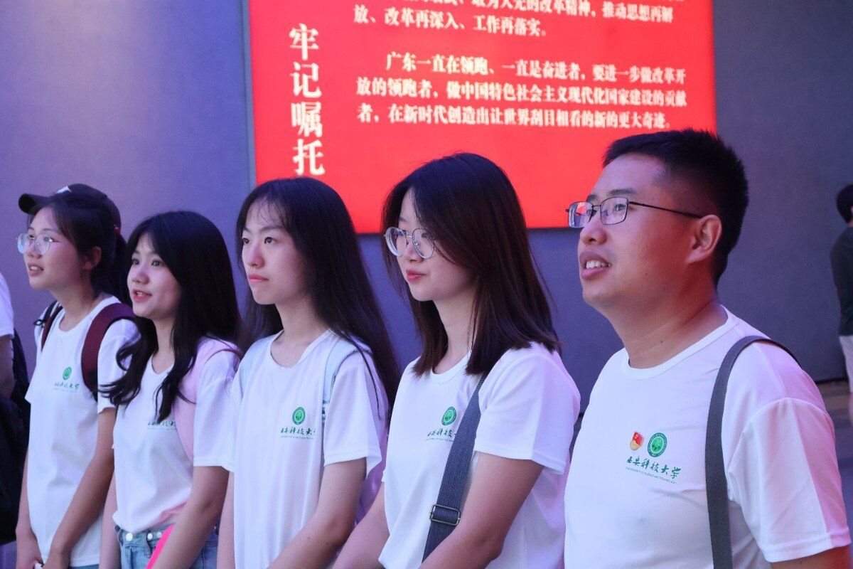 社会实践团队重走总书记的足迹,到习近平手植树、大潮起珠江——改革开放四十周年展览馆参观,并与西安理工大学“因材施教”社会实践团在线连麦,把深圳经济特区的蓬勃发展展现给陕西省宝鸡市麟游县南坊小学的员工。沿着改革开放的历史脉络,实践团队的每个成员都在感悟解放思想、实事求是,开拓创新、勇于担当,开放包容、兼容并蓄的精神品格。