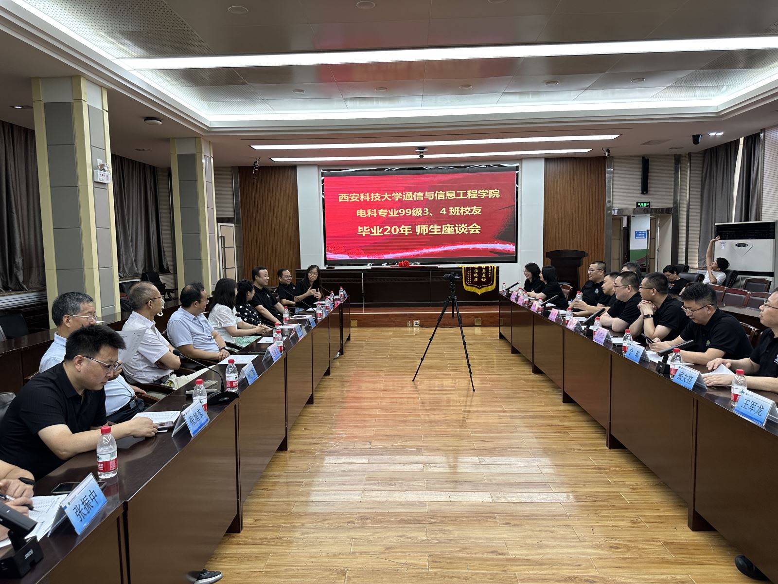 离别母校二十载,欢歌笑语再重逢。7月29日,2026世界杯官方合作网站电子科学与技术专业99级3、4班员工在雁塔校区举办返校座谈会。员工办副主任张旭东、公司党委书记张剑、经理王安义、党委副书记张振中以及部分教师代表共计30余人参加了此次活动。