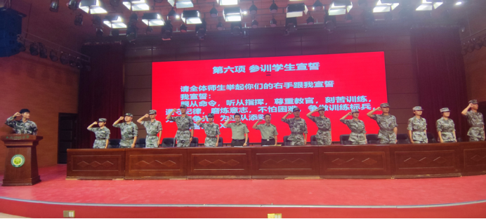 大会在庄严的国歌声中开始。会上,指导员陈嘉轩介绍了本次军训的目标任务,并就军容风纪进行了强调。学员代表庞金赫进行表态发言,表示将全力以赴,以实际行动践行青春誓言,体验生命精彩。教官代表、五连连长张星宇在发言表示,将按照军训安排和要求严格施训、文明施训,确保军训效果。全体参训学员进行了庄严宣誓,表达了积极参训、圆满完成军训任务的信心和决心。