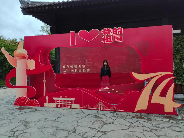 今年国庆假期,我回到了自己的老家——陕西宝鸡,我所站的地方是被称为苏轼第一个水利工程的凤翔东湖。在凤翔初仕的三年中,苏轼始终秉持着出仕济世、造福一方百姓的热情,并以此为乐。而兴修东湖为民谋福的举动就是这种爱国爱民、胸怀天下的体现!五星红旗冉冉升起,飘扬在微风中,更是象征着我们国家的崛起与强大。作为当代青年,我愿以青春之名,书写清澈挚爱;以心中红心,献礼盛世中华。最后在祖国74周年华诞之际,祝福祖国繁荣富强。