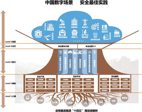 面临“数字中国”的新安全挑战,启明星辰集团基于场景化安全思维,依托核心技术优势与丰富经验积累,绘制“五横八纵”战略树。根植网络安全技术沃土,战略树横向划分土壤、基础、能力、交付、场景五个层面,纵向贯穿集团未来五年重点战略布局的大数据AI安全分析、数据要素化安全、云安全管控、工业数字化安全、零信任等八大维度,横纵联动构建围绕全业务流程和数据全生命周期的风险控制机制,打造自主可控的安全生态体系,赋能更加高效、智慧、安全的数字化应用场景,实现“护航数字中国,领航信息安全”的美好愿景。