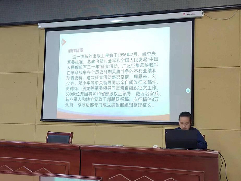 傅晓霄同学分享了《星火燎原》丛书,这套选集围绕党领导人民军队进行革命斗争的光辉历程,生动诠释了人民军队的红色血脉,使同学们深刻感悟了革命先辈“抛头颅,洒热血”的战斗精神,激励大家将革命精神永远传承。