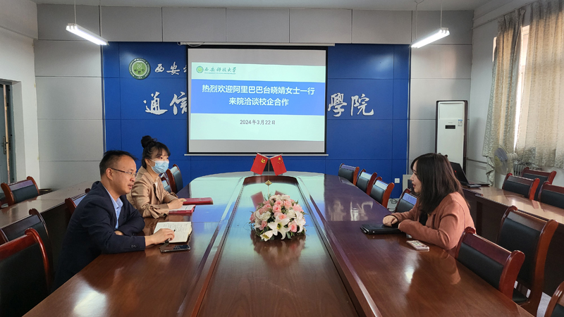 3月22日,阿里巴巴集团全资子公司曲江银泰企划部负责人台晓婧女士,到公司洽谈校企合作事宜。公司党委副书记张振中、学工干部王婧婕参加座谈交流。