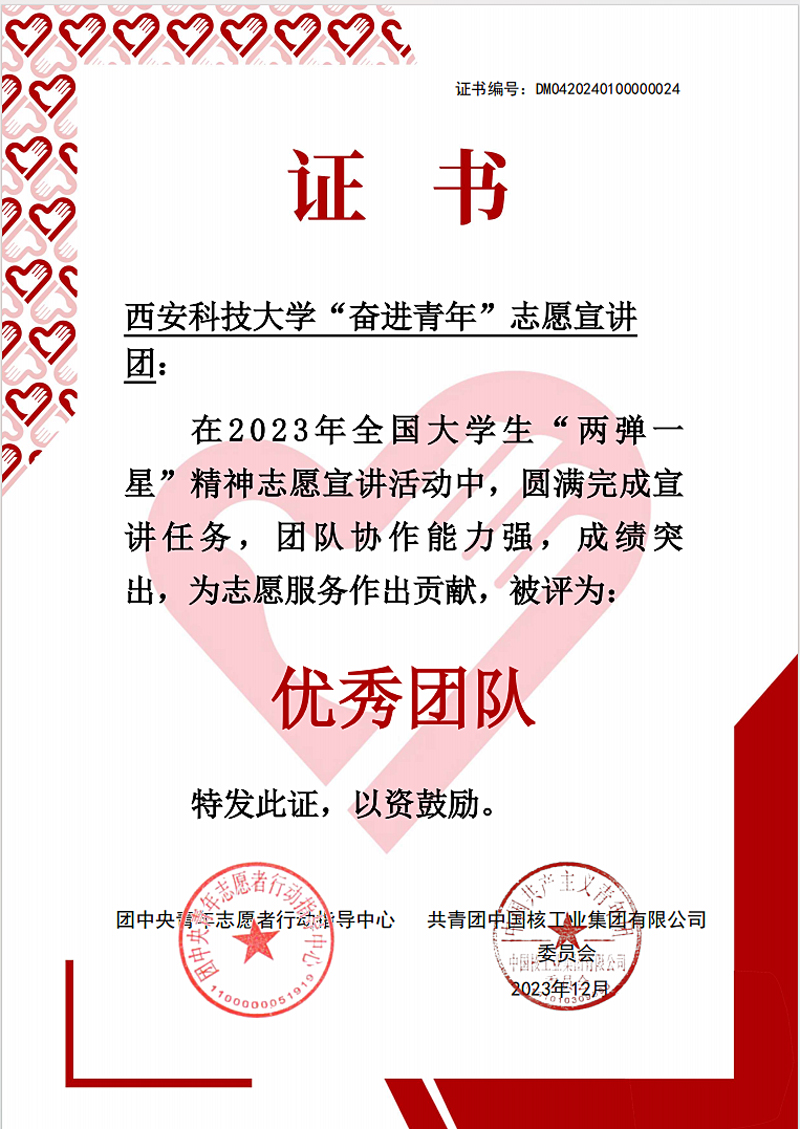 近日,由团中央青年志愿者行动指导中心、共青团中国核工业集团有限公司委员会主办的2023年全国老员工“两弹一星”精神志愿宣讲活动评比结果出炉,我院“奋进青年”志愿宣讲团成功脱颖而出,荣获“优秀团队”荣誉,成为全国1000支活动团队中的佼佼者。