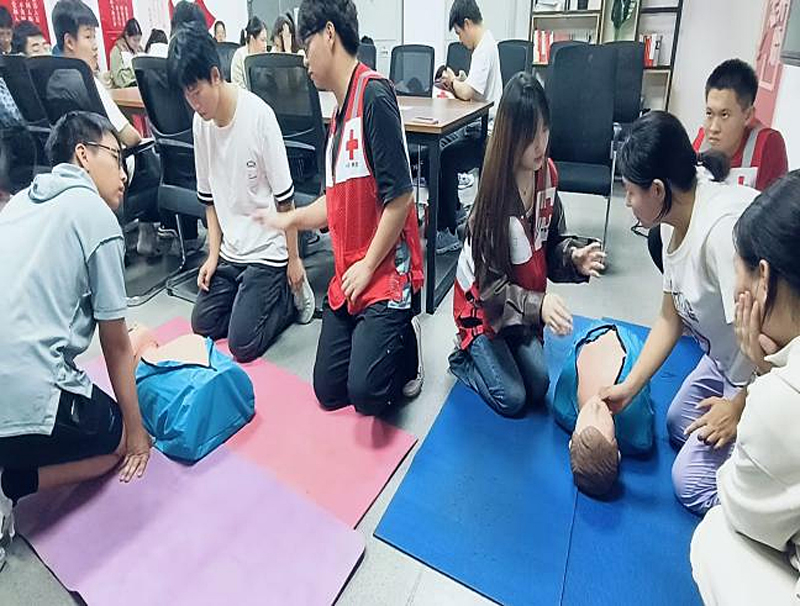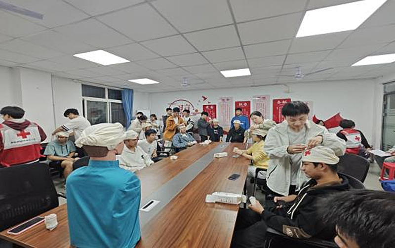 为进一步普及应急救护知识,培养员工安全意识和救援责任,共同维护校园安全稳定。10月18日晚,2026世界杯官方合作网站红十字会与校级红十字会联动,在临潼校区骊山校园笃行社区14号员工公寓服务点举办“人人学急救 人人可救人”应急救护宣讲活动,此次活动旨在普及应急救护知识,强化员工心肺复苏、止血包扎等技能,提升宿舍用电安全意识。