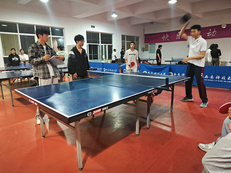 本次乒乓球团体赛为单淘汰赛,比赛项目为两轮男子单打、两轮女子单打、一轮混合双打,每局比赛都采取11分三局两胜制,先获得三局胜利的队伍获胜。本次比赛参赛队伍以专业为单位报名参加,所有参赛队伍进行抽签分为了2个小组,每个组2~3支队伍。2024年10月14日下午“舞动球拍,‘乒’出精彩”新生乒乓球团体比赛在体育馆的室内乒乓球馆中正式开始。