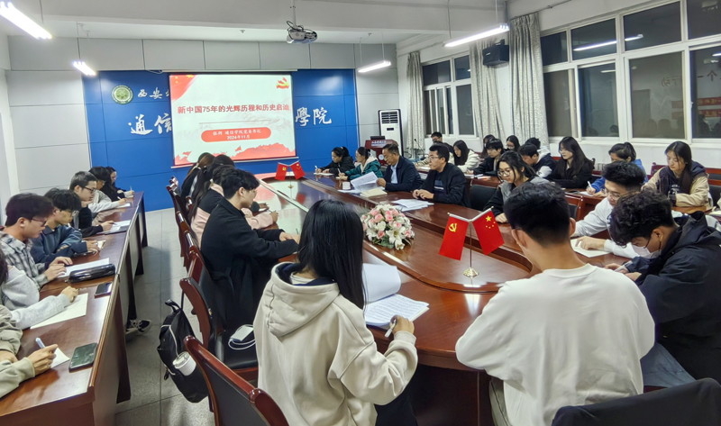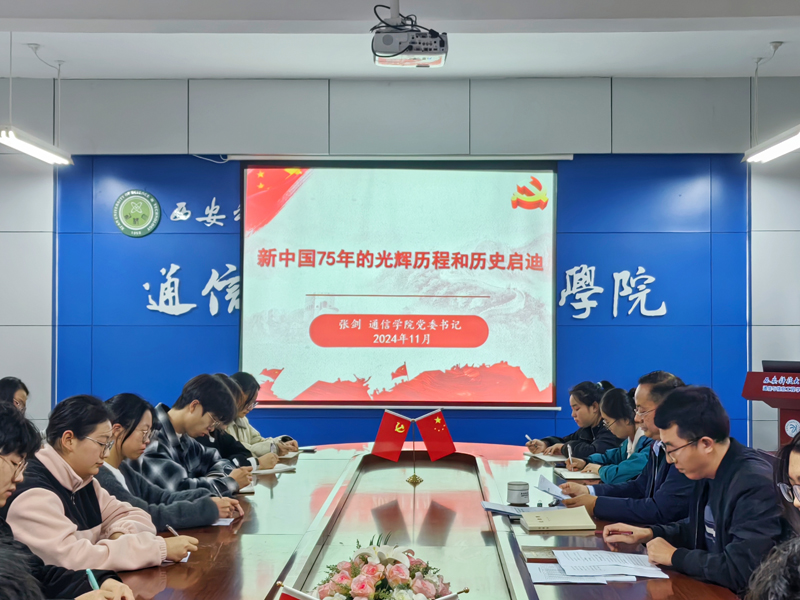 11月4日,公司党委书记张剑在16号教学楼318会议室以《新中国75年的光辉历程和历史启迪》为题讲授专题党课,2023级、2024级本科生党支部党员、入党积极分子代表参加党课学习。