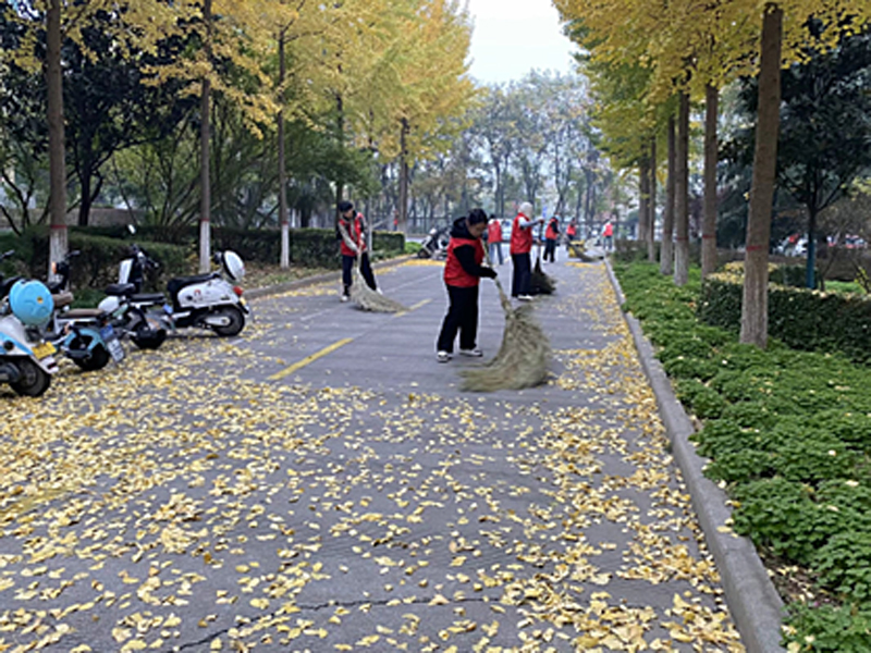 空山新雨后,天气晚来秋。现在正值深秋,落叶纷飞的季节,公司组织员工有序开展清扫活动:清扫校园东门区域,教学楼等道路两旁的树叶,并分装好。同学们不怕脏、不喊累,经过两个小时的不懈努力,教学楼以及主干道上多处隐蔽垃圾得到彻底清洁。全体同学在清扫过程中相互配合,沟通协调,用实际行动展现通信学子不畏艰难、吃苦耐劳、主动承担责任的良好精神面貌。