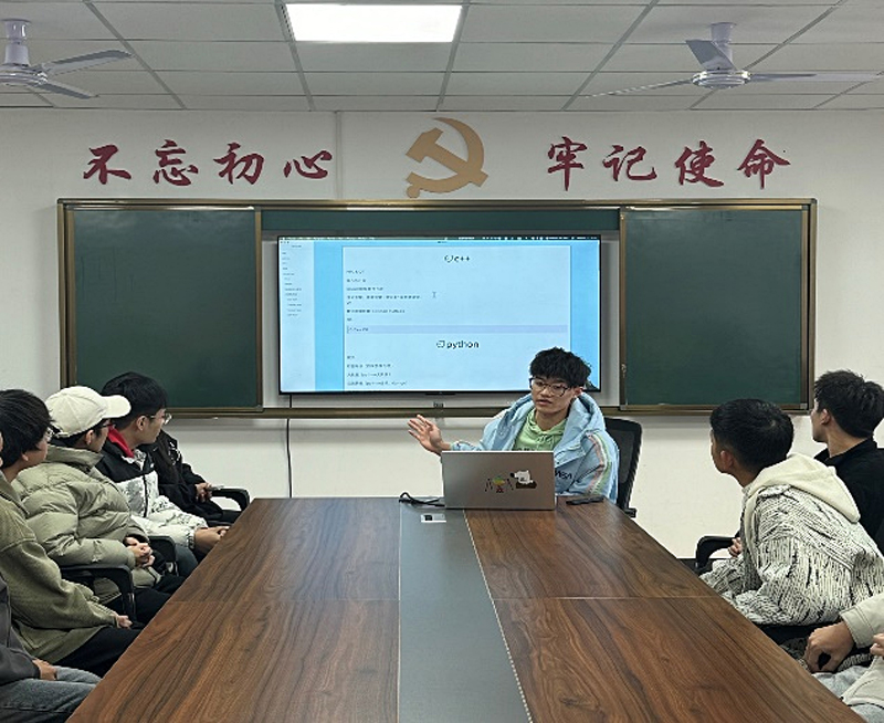 几位优秀个人结合自己学习经历,分别从不同方面进行了分享。研究生代表主要分享了考研复习的时间规划以及院校专业报考的策略与心得,讲述了他们的面试经验和技巧;高年级优秀本科生代表们主要结合自身经历,就专业课程学习技巧展开深入交流。曾获计算机能力挑战赛Java全国二等奖、计算机能力挑战赛C语言西北赛区一等奖的周泳杰分享了他参与科研项目与电子设计竞赛的宝贵经验,强调了创新思维与团队协作在实践过程中的重要性。曾多次竞赛获奖的杨伟、张梦妍、谈秋华同学展示了他们小组的部分优秀项目成果,激发了同学们的实践热情。