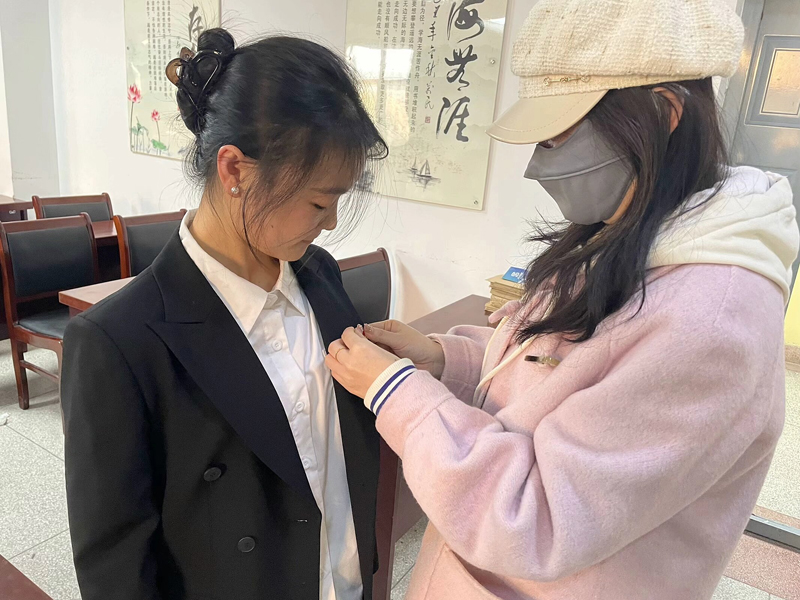支部书记刘悦老师向所有党员赠送党徽,通过“戴党徽、亮身份、树形象、做表率”行动,不断提升党员的荣誉感、责任感和使命感。