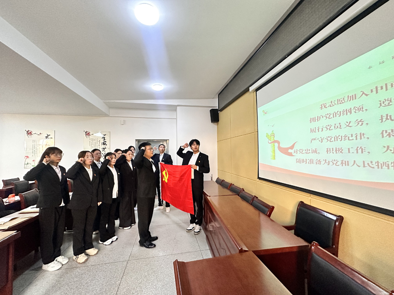 拟接收预备党员面向党旗进行入党宣誓,大家纷纷表示,今后将时刻牢记党员身份,把入党誓词牢记于心、终身践行,坚持以习近平新时代中国特色社会主义思想为指导,锤炼坚强党性,提升能力本领,努力成为合格的共产党员。