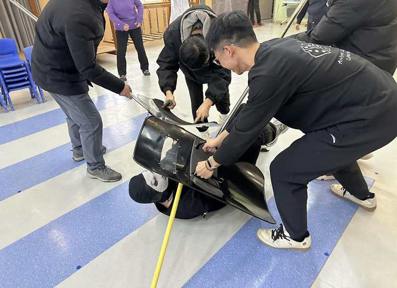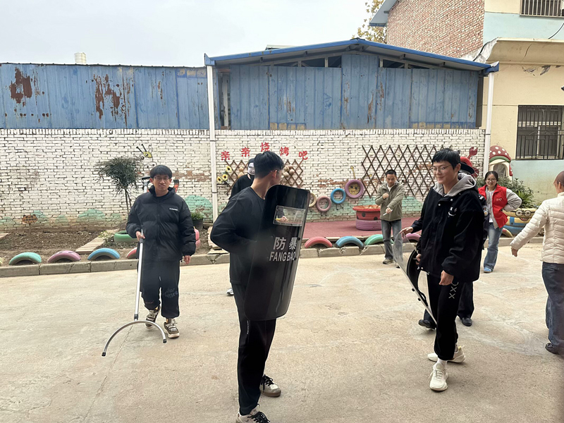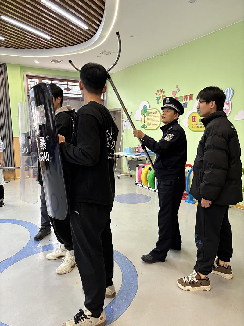 应急始于心,防患始于行。接下来志愿者们协同街道民警配合进行实操演示,民警协同志愿者们在教室外制服歹徒,小朋友们在室内进行疏散演练,引导小朋友们学会当遇到危险时如何更好地保护自己,整个团队深度磨合、分工协作、互相补位,打造了一场精细的反恐防暴安全课堂。此次演练,增强了小朋友们的安全防范意识和反恐防暴应急能力,于通院青年而言,是责任担当的践行。