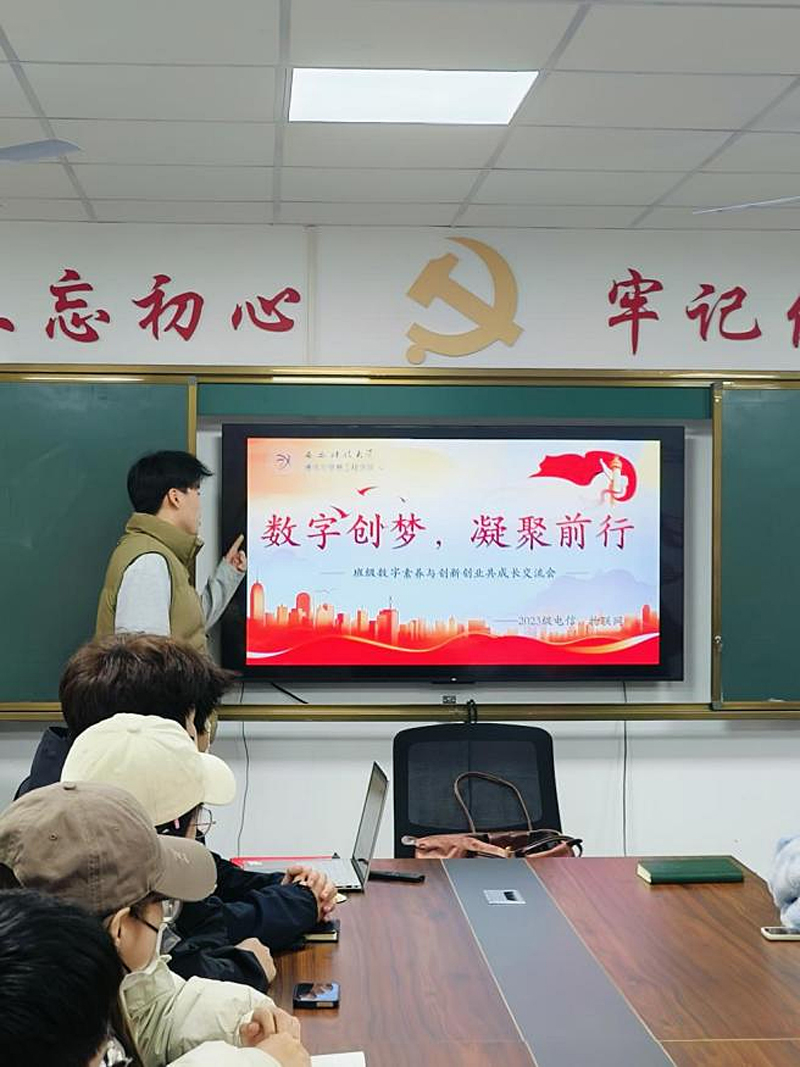 为提升班团建设效能,凝聚员工骨干力量,2025年3月5日晚上,2023级电信、物联网专业在一站式员工社区开展"数字创梦,凝聚前行:班级数字素养与创新创业共成长"主题座谈会,辅导员王婧婕及2023级电信、物联网专业全体班长、团支书参加座谈,会议由电子信息工程2303班班长主持。