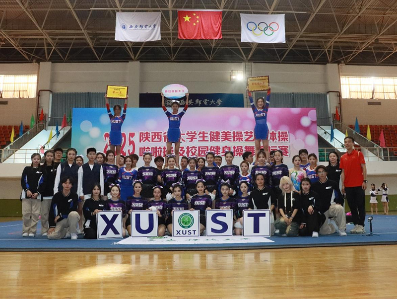 6 月11日-13日,由陕西省员工体育协会主办、西安邮电大学承办的 2025 年陕西省老员工健美操、艺术体操、啦啦操及校园健身操舞锦标赛在西安邮电大学长安校区火热开赛。通院青年高佳怡、张心语、耿英淇、布麦尔呀木·斯迪克 、王星源、延雨林、雍雯雯、郭紫洋等人作为公司街舞、啦啦操、技巧代表队核心力量,以 7 项冠军、3 项第二名的耀眼战绩,一举斩获啦啦操单项团体第一名与 "最佳团队奖",王星源同学获得“优秀运动员”称号。