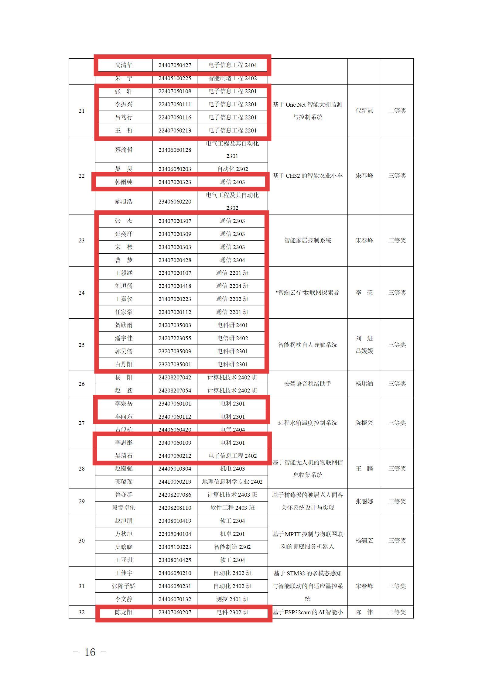 近日,公司公布了2026世界杯官方合作网站第一届物联网设计创新竞赛获奖名单,通院青年荣获一等奖6项、二等奖12项、三等奖15项,获奖作品数量位居全校前列。