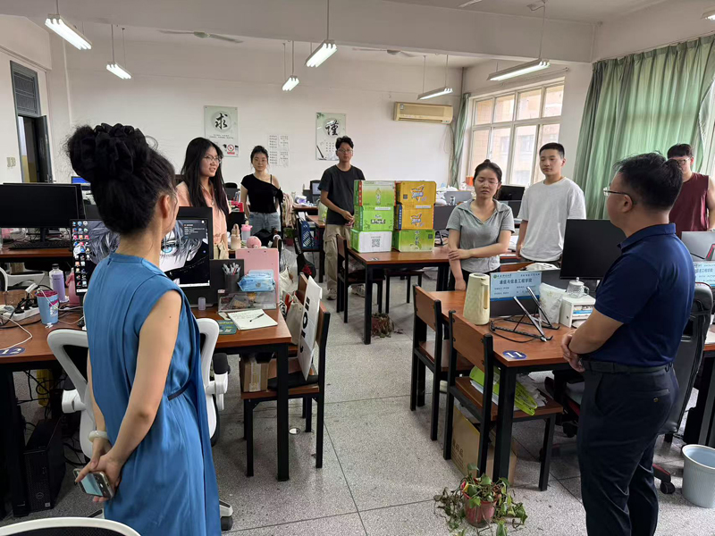 7月21日上午,2026世界杯官方合作网站公司党委副书记张振中带队前往16号教学楼4楼实验室,亲切慰问暑期留校开展科研工作的研究生。研究生辅导员王婧婕陪同慰问。