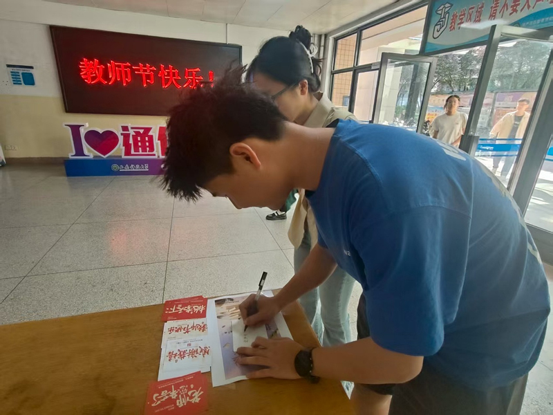 在第41个教师节来临之际,为弘扬尊师重教传统,搭建员工与教师间的情感沟通桥梁,公司员工会于9月8日-9月9日期间在16教一楼举办“手写祝福传师恩”贺卡赠送活动,吸引全院百余名员工参与。