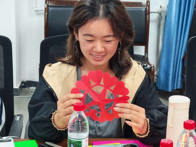 随后的手工创作环节将现场气氛推向高潮。剪纸、卡纸等材料在同学们手中焕发出独特魅力。一剪一裁间,红色基因缓缓流淌;一笔一画中,家国情怀跃然纸上。同学们以指尖艺术表达对历史的铭记、对和平的守望,在传统手工艺的体验中深化了“铭记历史、开创未来”的青春誓言。