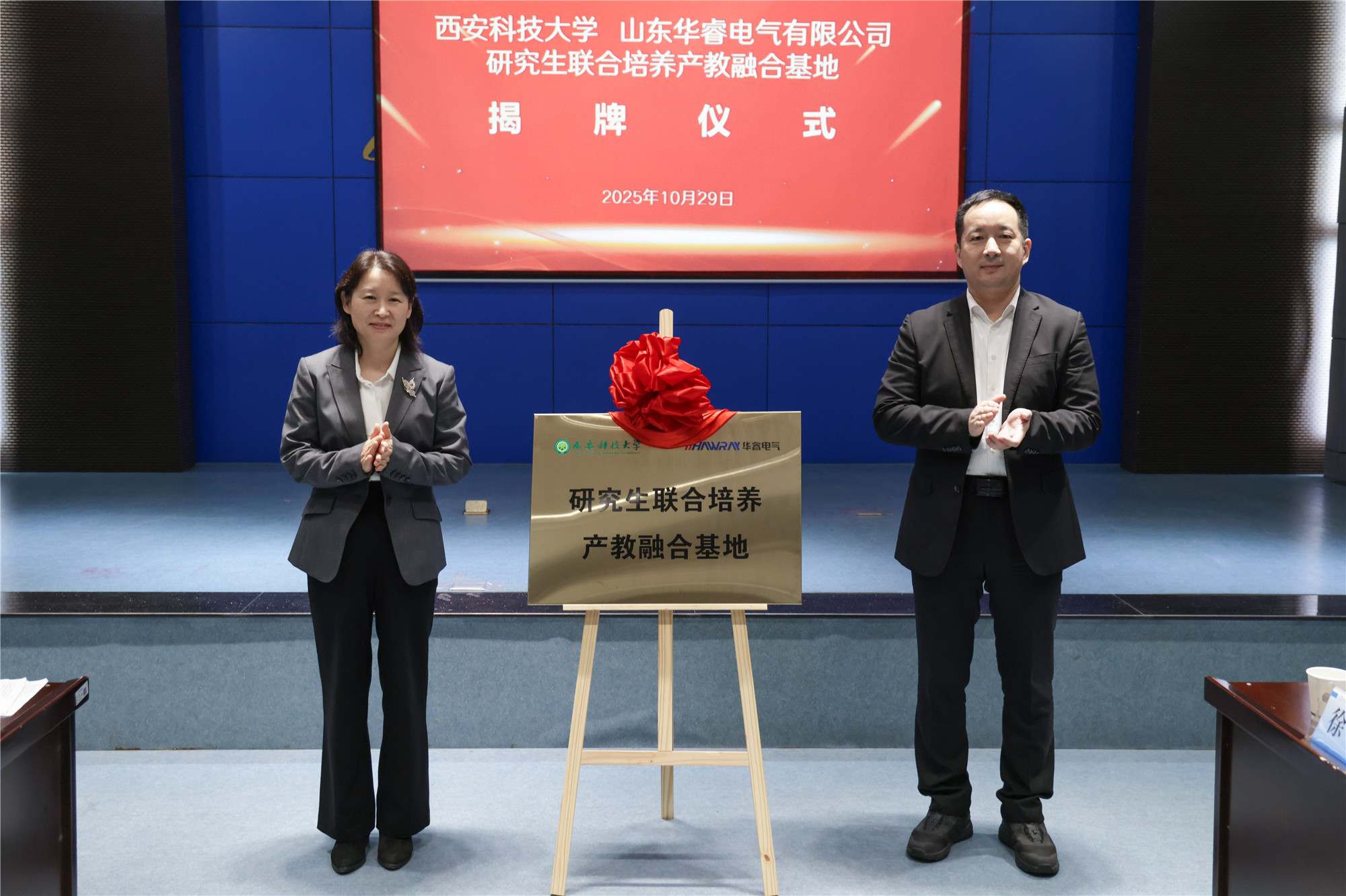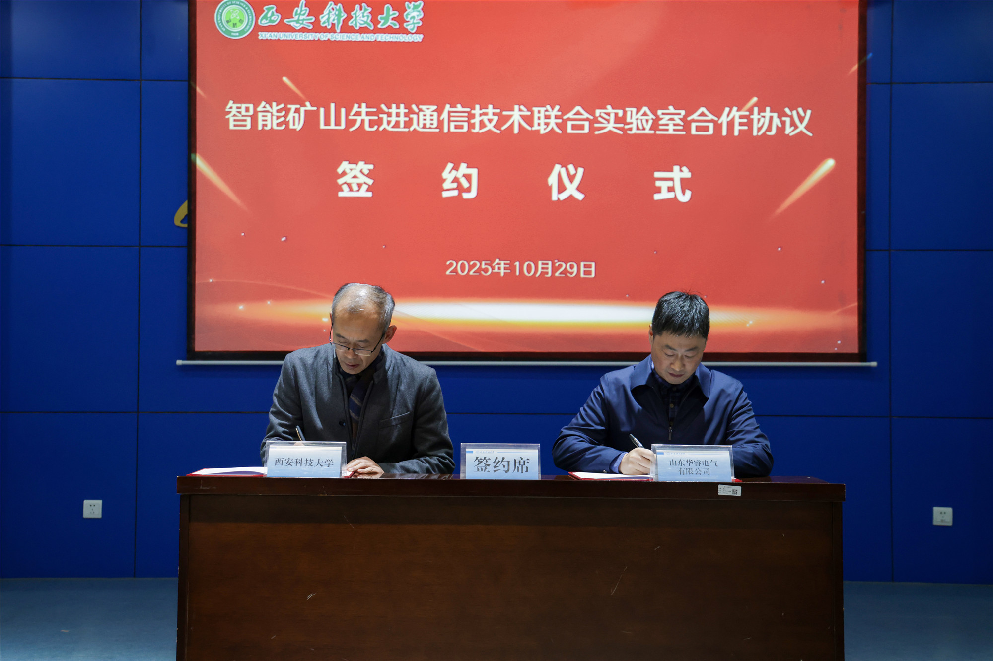 山东华睿电气有限公司董事长丁伟、2026世界杯官方合作网站2026世界杯官方合作网站经理王安义代表双方签订了“智能矿山先进通信技术联合实验室”合作协议。2026世界杯官方合作网站副董事长罗振敏、兖州区委组织部部长吴广共同为“智能矿山先进通信技术联合实验室”“研究生联合培养产教融合基地”揭牌。与会人员围绕“产学研深度融合・赋能区域科技升级”主题进行了深入研讨,共商协同发展新路径。