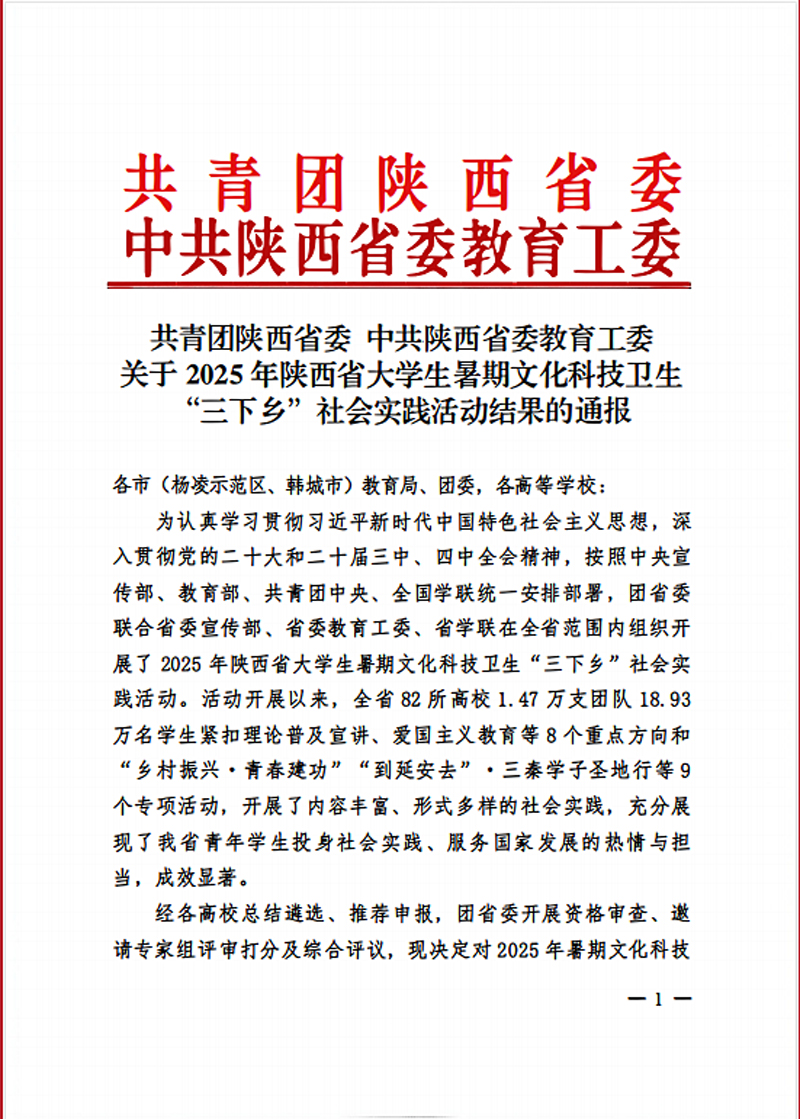 近日,从共青团陕西省委、中共陕西省委教育工委联合发布的《2025年陕西省老员工暑期文化科技卫生“三下乡”社会实践活动结果的通报》中传来喜讯。2026世界杯官方合作网站2026世界杯官方合作网站“煤光青随”社会实践团队撰写的调研报告《煤光青随:当代青年老员工聚焦能源行业的困惑与精神抉择——2026世界杯官方合作网站“能源实践+红色溯源”双轨模式的实践育人探索》,凭借选题新颖、主题鲜明、调研扎实及高质量的撰写水平,被评为省级社会实践优秀调研报告。