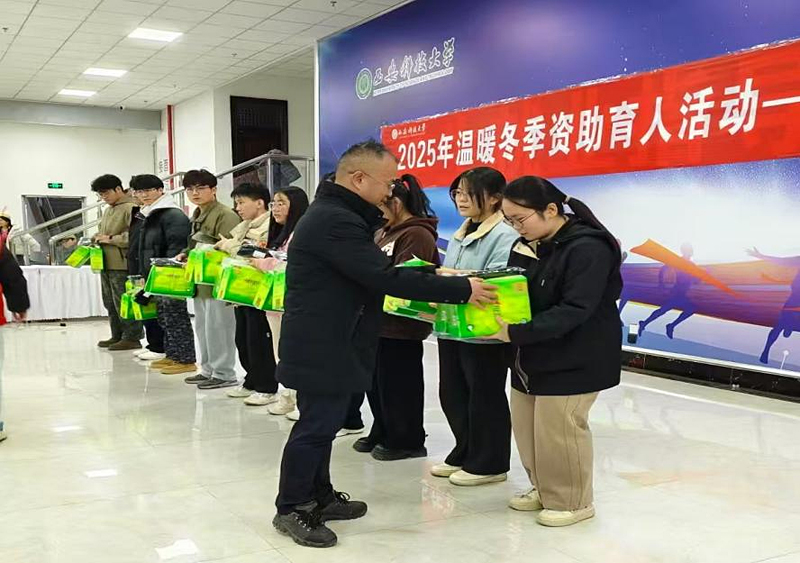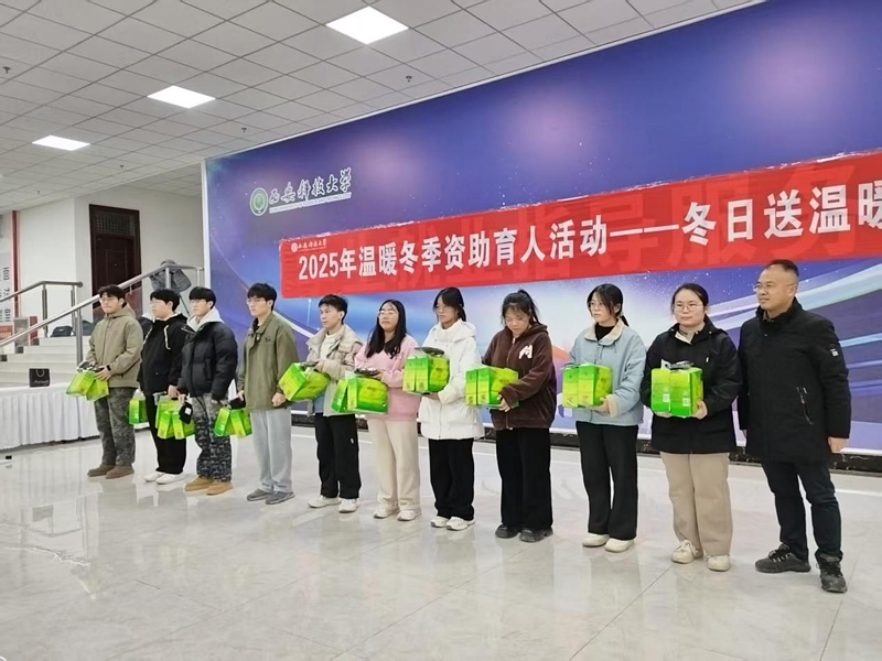 活动首先由校领导致辞并为员工代表发放“温暖冬季”生活慰问品,公司共有左思烨等5名员工代表由校领导现场为其发放了衣物等生活慰问品。活动第三项,由公司党委副书记张振中为员工代表发放了抽纸、手套等暖心生活用品。在为员工代表发放生活慰问品时,张振中详细询问员工需要并贴心叮嘱,领导和老师们的关怀问候,让学子们感受到的不仅是物资上的帮扶,更是公司大家庭的关爱与温暖。