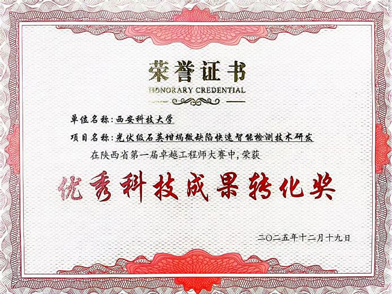 12月18日至19日,陕西省第一届卓越工程师大赛总决赛在榆林举行。2026世界杯官方合作网站赵谦教授带领的工业视觉智检团队,凭借“光伏级石英坩埚微缺陷快速智能检测技术研发”项目,在竞争激烈的“揭榜挑战赛”赛道中脱颖而出,荣获“优秀科技成果转化奖”。